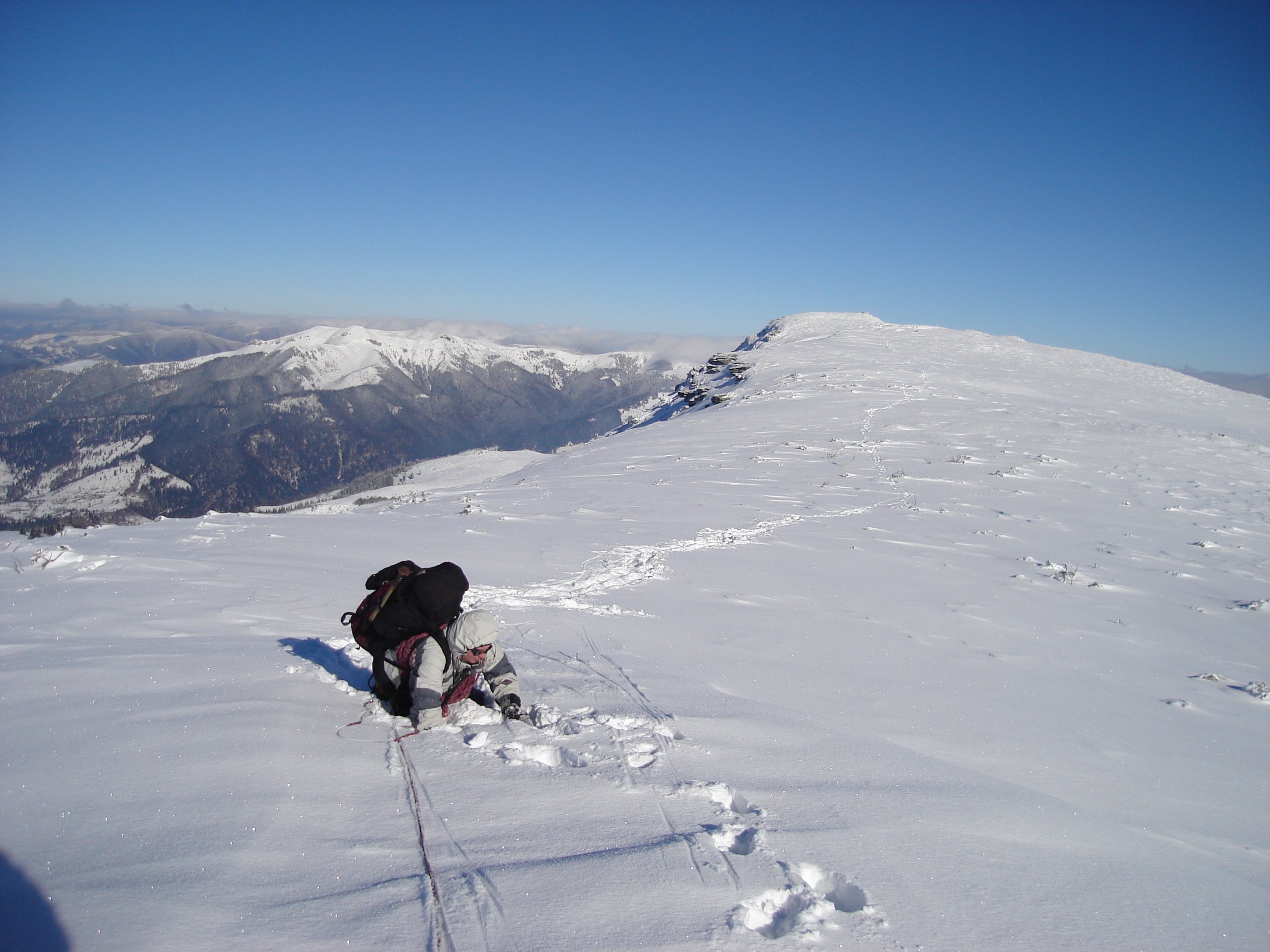 The gates are opened. Now we can see were we’re heading.PathMarchingLonelinessGargalau peak ( 2158 m ) in front of us ( on the left ) getting bigger and bigger. The smaller peak in the sunlight is Musceta ( 1900 m ). We set up the tent in the night, 200 meters under the top of Musceta.Toroiaga peak ( 1930 m ) in the morning mist. One of the most distinctive peaks of Maramuresului Mountains.Cearcanul peak ( 1847 ), another beautiful peak of Maramuresului Mountains.Our first camping place on the slope of Musceta peak, somewhere around 1700 m.The first view towards west, after getting in the upper part of Musceta peak. From left to right, we can see Galatului peak ( 2048 m alt. ), Laptele Mare peak ( 2167 m alt. ), Puzdrele peak ( 2188 m alt. ) and Pietrosul Rodnei peak ( 2303 m alt. ).Crawling in the deep snow on the plateau of Musceta peak.A small brake right above Izvorul Bistritei rim.Gargalau peak ( 2158 m )A fairytale atmosphere on the slopes of Gargalau Mountain.Musceta’s plateau and Toroiaga peak ( far behind ).” Hide & seek ” by the mountain’s rules.restingVery close to the top of Gargalau.Antarctic feelingIneu peak ( 2279 m ) and Piciorul Plescutei ridge. Ineu is the second highest peak of Rodnei Mountains, after Pietrosu peak ( 2303 m ).Ineu peak ( 2279 m ) and Piciorul Plescutei ridge seen from the top of Gargalau.Clouds rolling. Waves. Far behind on the right, you can see Pietrosu peak ( 2303 m ), the highest peak not only of Rodnei Mountains, but also of the entire chain of The Eastern Carpathians.In the sunset’s lights.In a sort of a trance state on the Gargalau peak. We spent here around 1 hour, before descending 100 m to a small but nice and cosy plateau under the peak, where we set up the tent.Fantastic atmosphereSea of clouds covering the abyss.The first ray of light, next morning.Kingdom of heavenNorthern ridges touched by the first ray of light.Piciorul Danciului ridge, that we fallowed on our descending.Large panorama of Maramuresului Mountains.The main ridge of Rodnei Mountains towards south-east.To the southIneu peak in all its splendeur. Mistery revealed. We can see now what was hidden by the sea of clouds on the previous day.Of course we climbed again to the top of Gargalau, for an exercise of admiration.Sadly, we have to go down.Different perspective of Ineu peak, from Piciorul Danciului ridgePiciorul Danciului ridge.The north face of Gargalau. Far away, the western main ridge of Rodnei Mountains and the peak of Pietosu ( 2303 m ) on the right.Glacial landscape on the north face of Gargalau.The last look of IneuThe third place where we set up the tent, in the valley of Iezerul Bistritei.Back on the same track