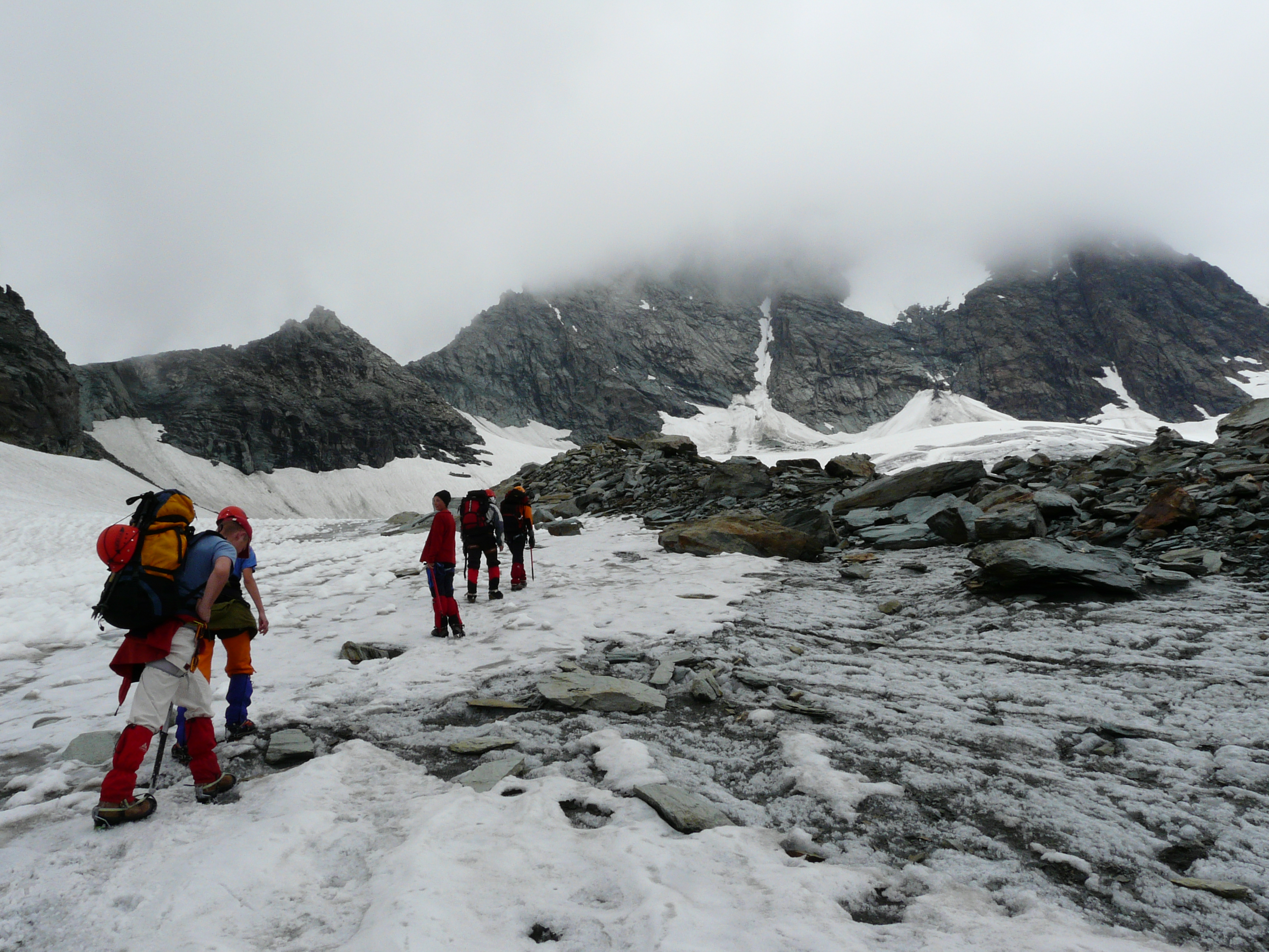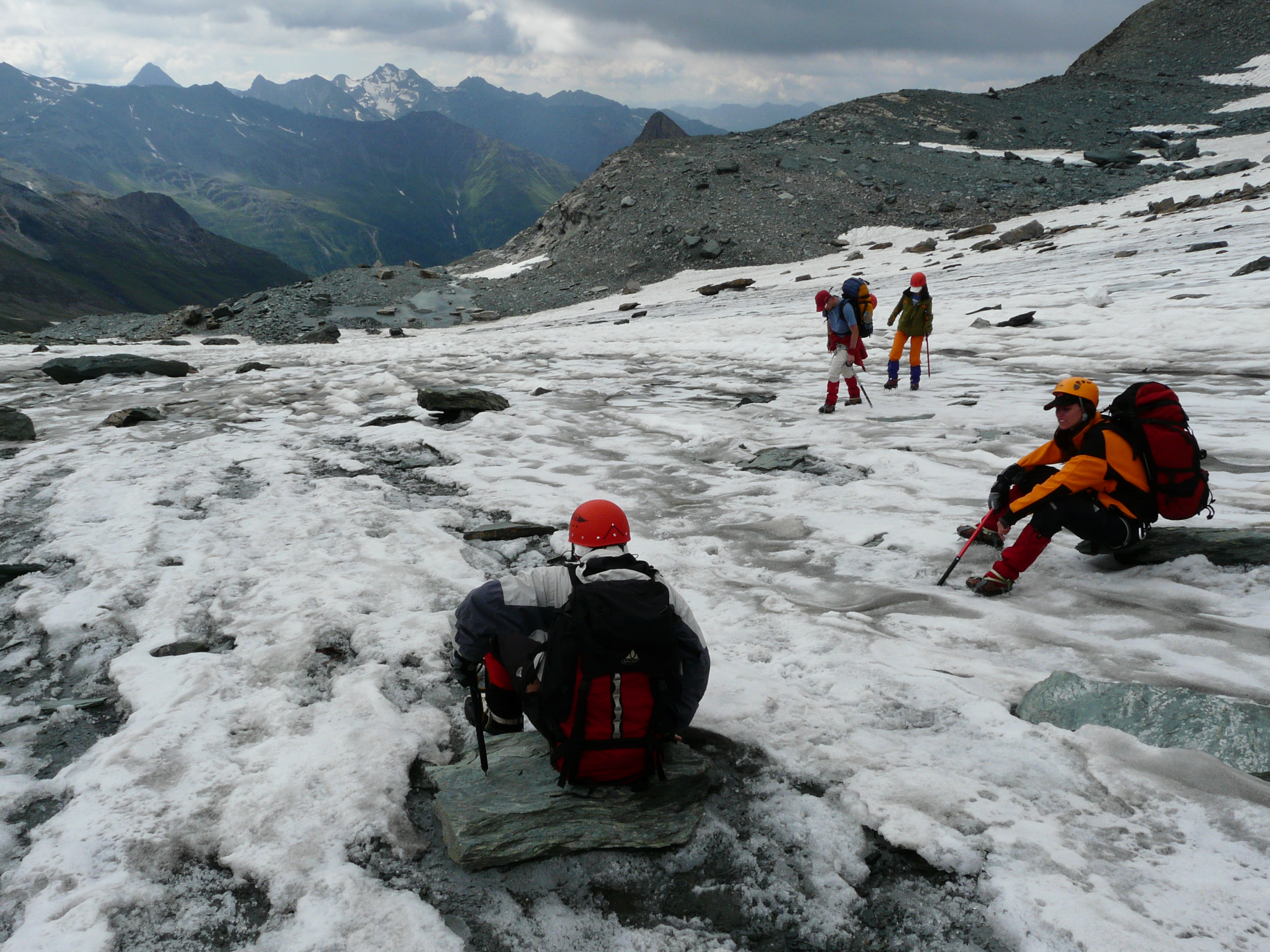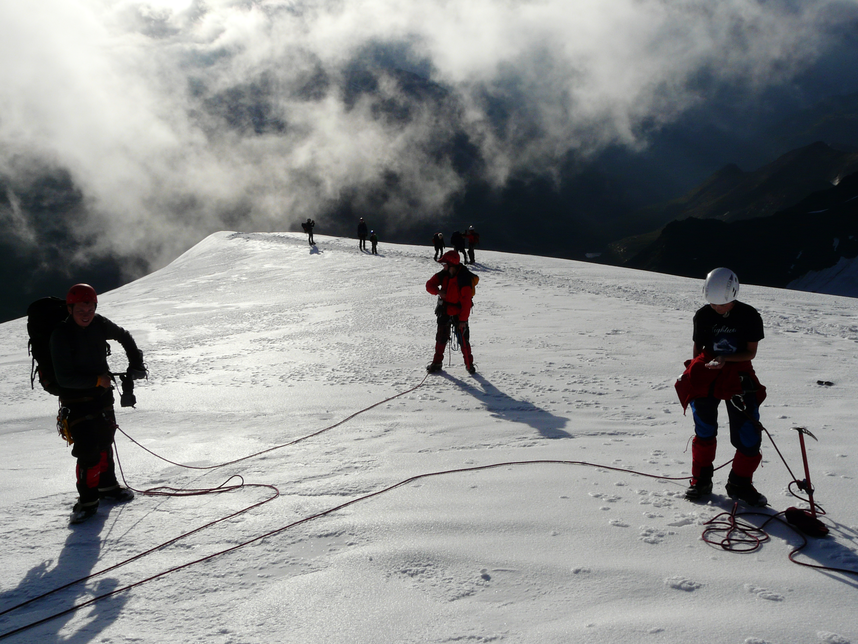 Hohe Tauern; Grossglockner seen from normal Stüdlhütte routeA short brake on the Kodnitz glacier.