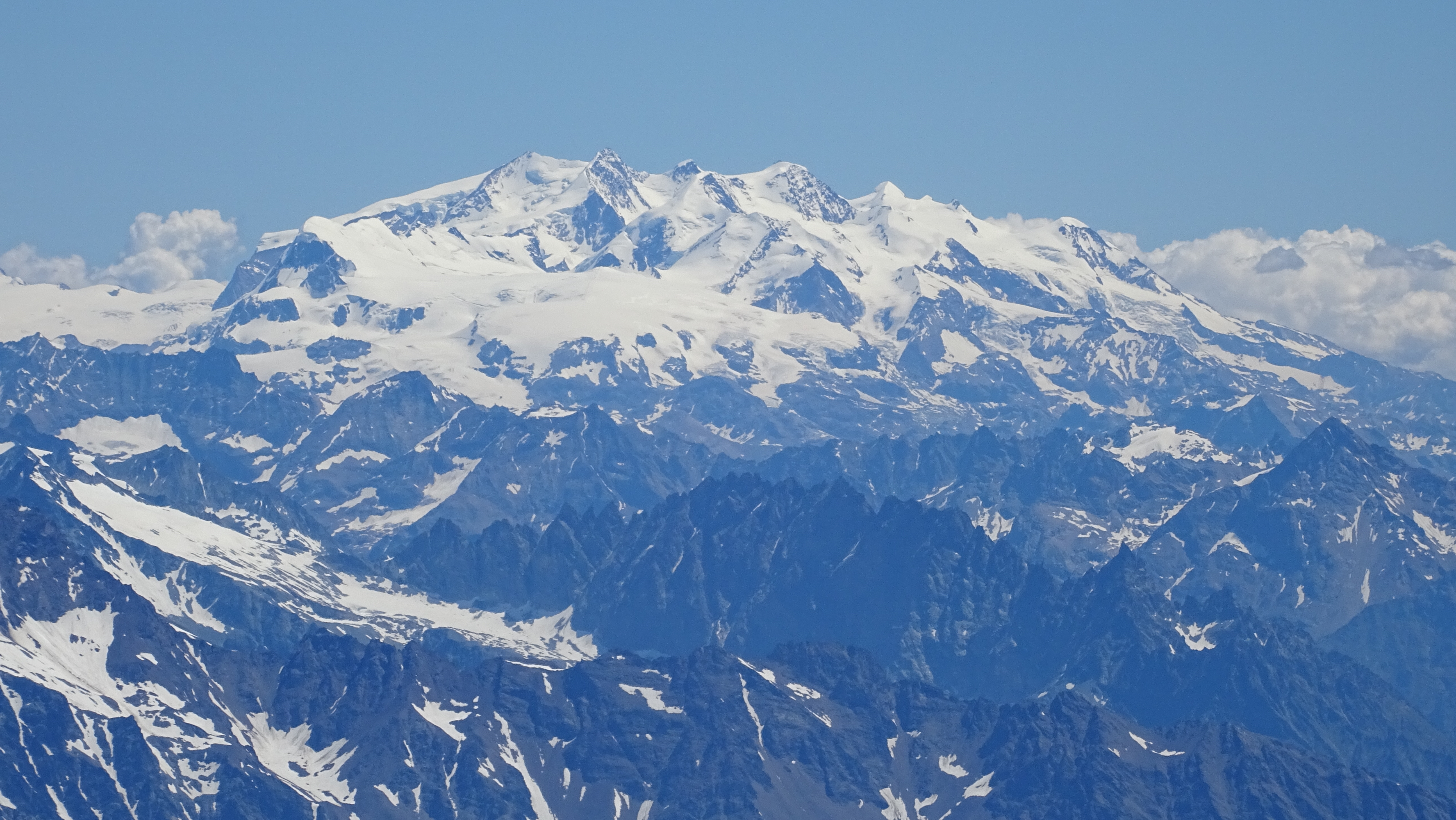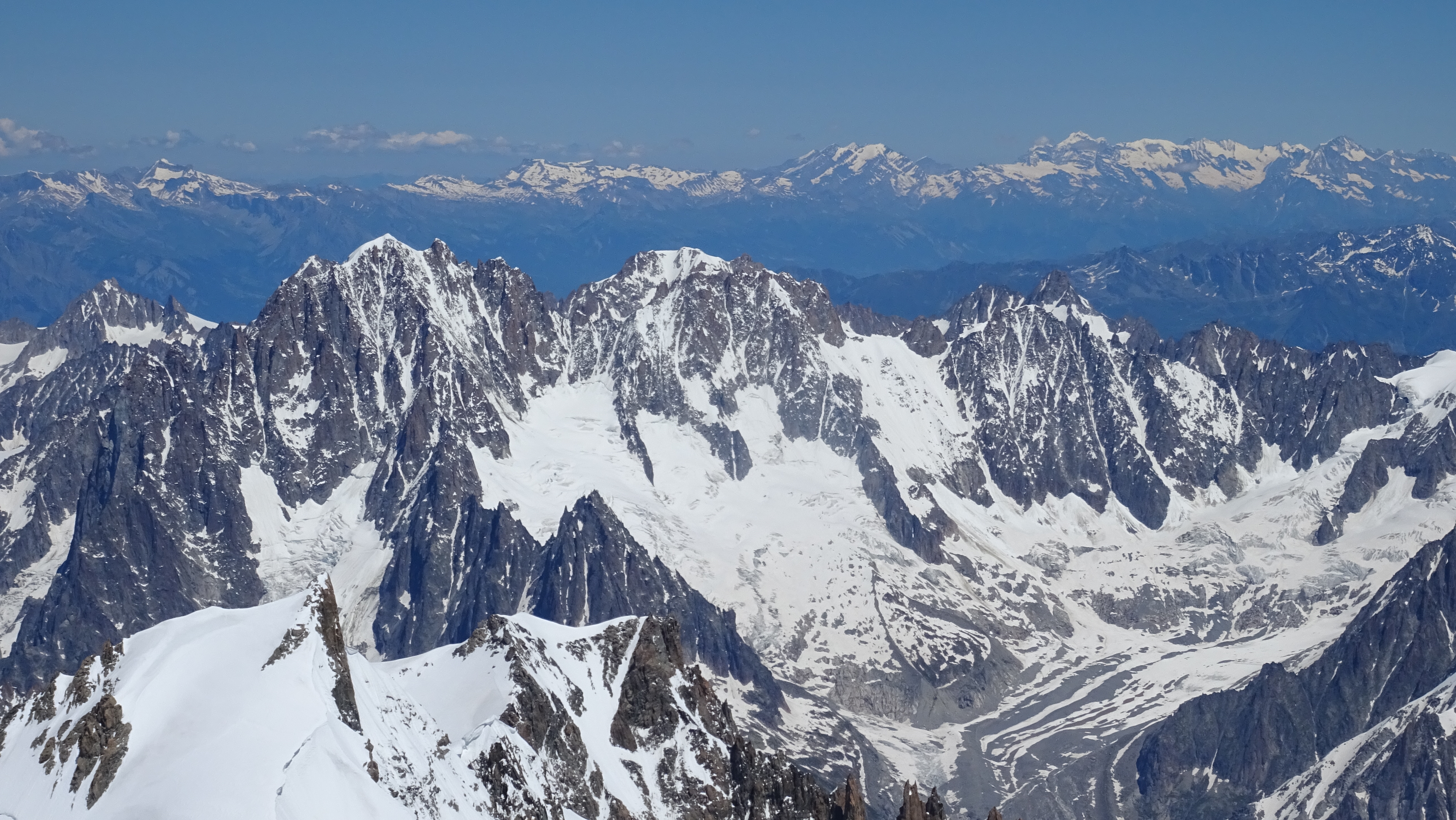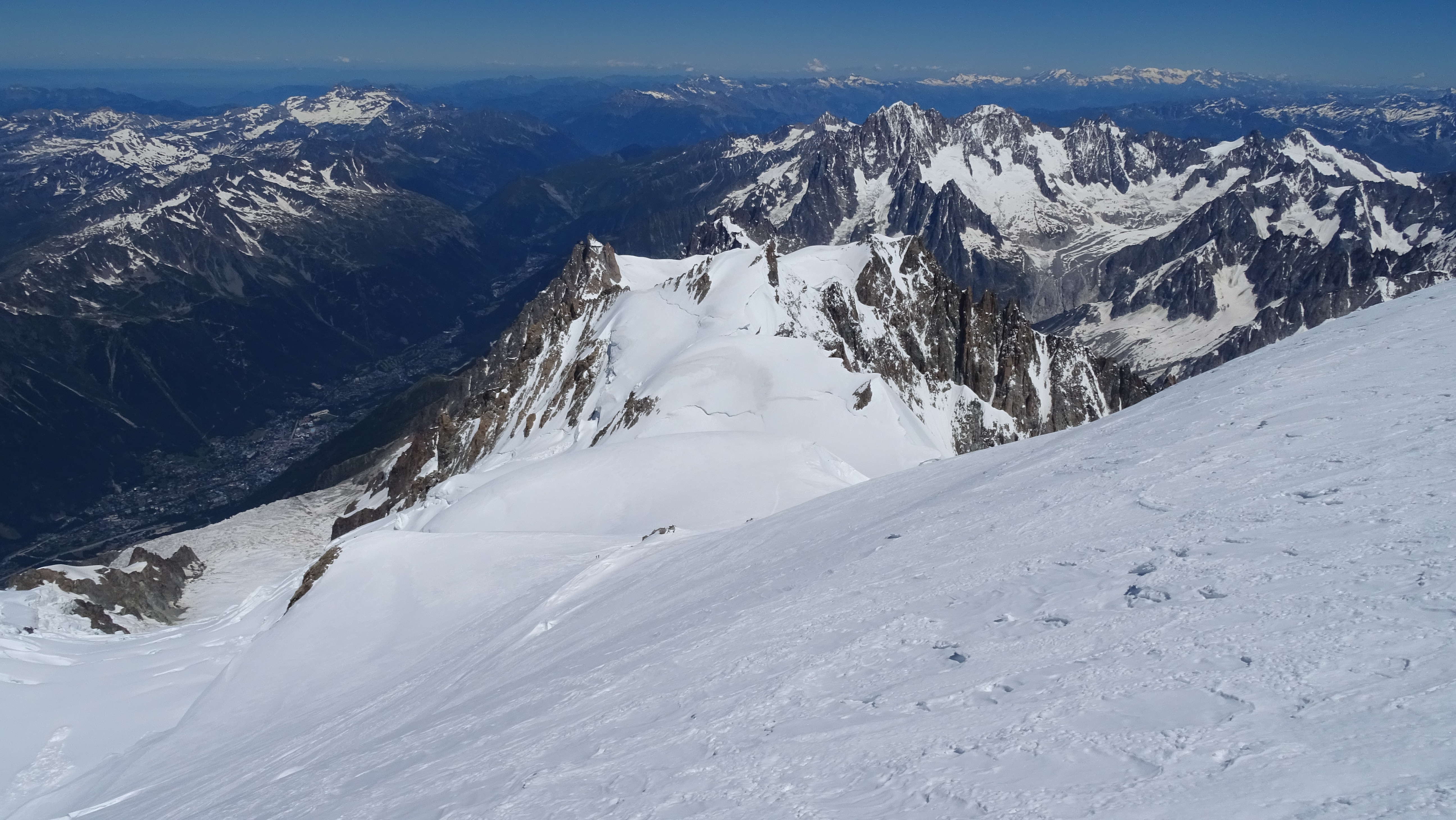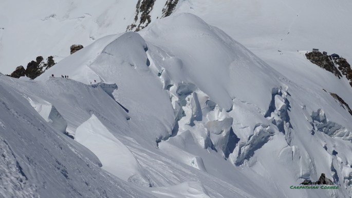 Cred că de aici ai cea mai completă imagine asupra Alpilor. În fond e și normal, doar e cel mai înalt vîrf din întregul lanț alpin. Franța, Italia și Elveția erau toate la discreția ochilor noștri! Am încercat să-mi întipăresc în minte cît mai multe detalii din ampla panoramă care mi se deschidea în fața ochilor. Imposibil cu asemenea puzderie de vîrfuri și creste! Noroc de aparatul foto! Cîteva dintre acestea:
