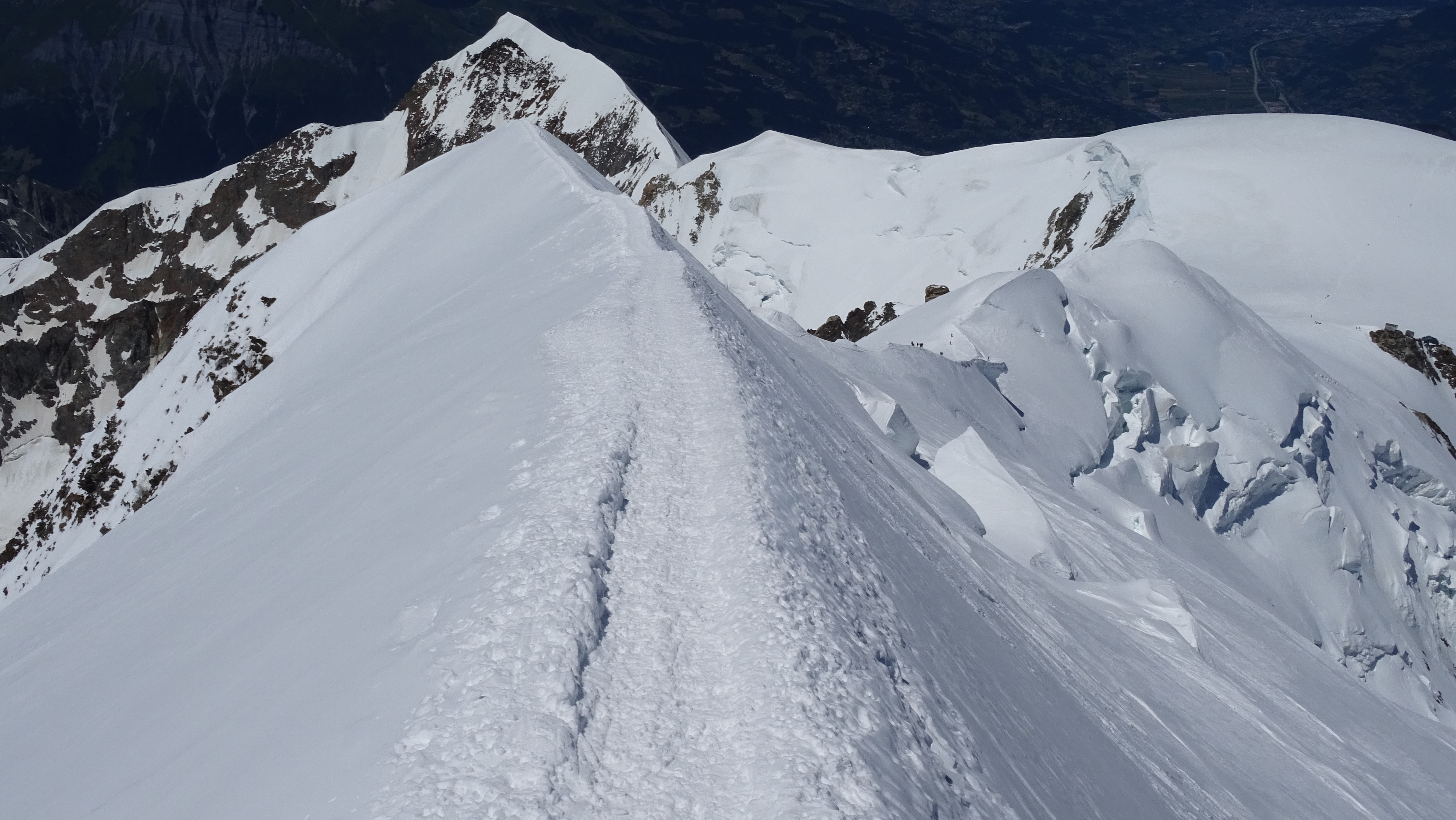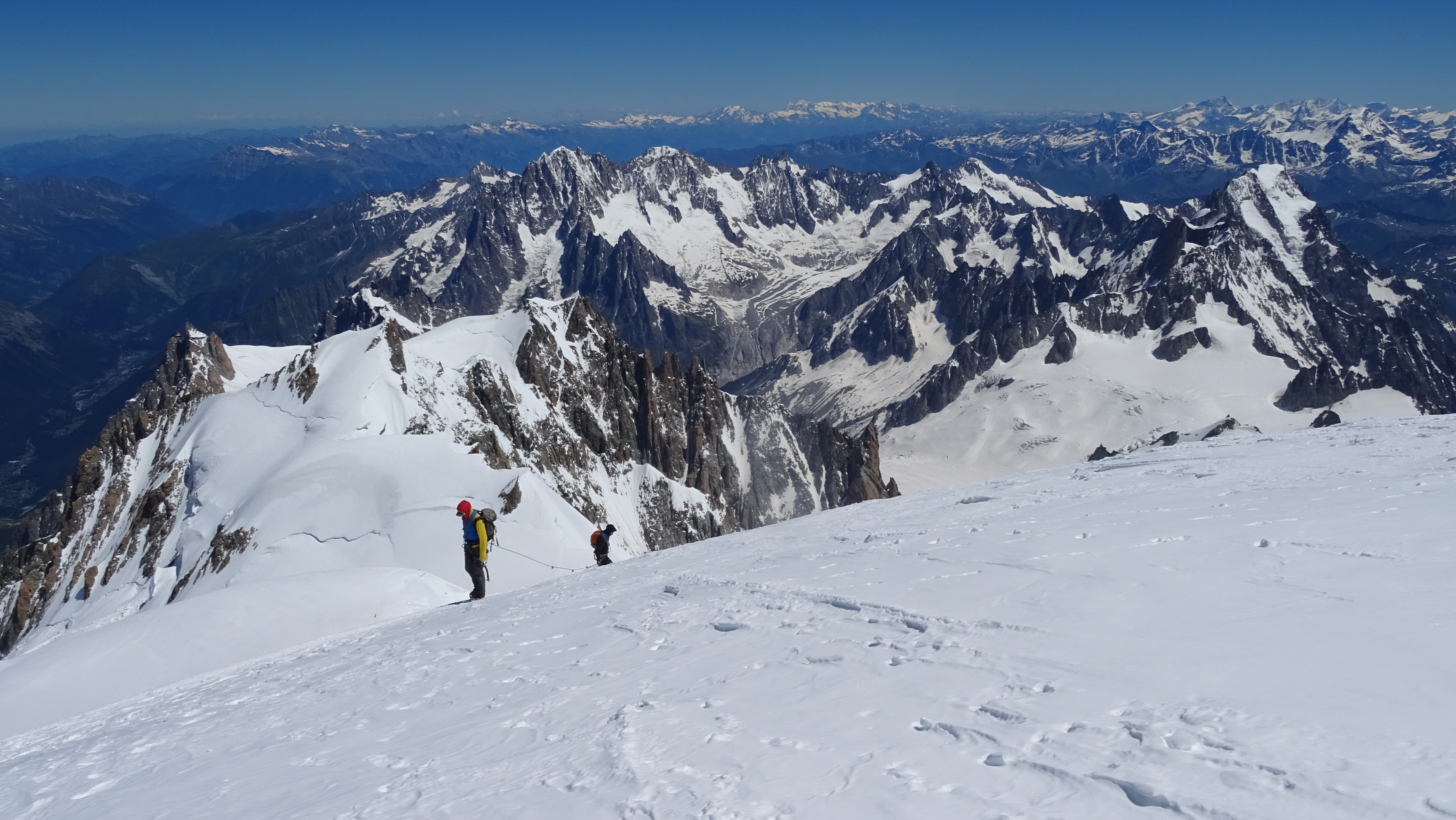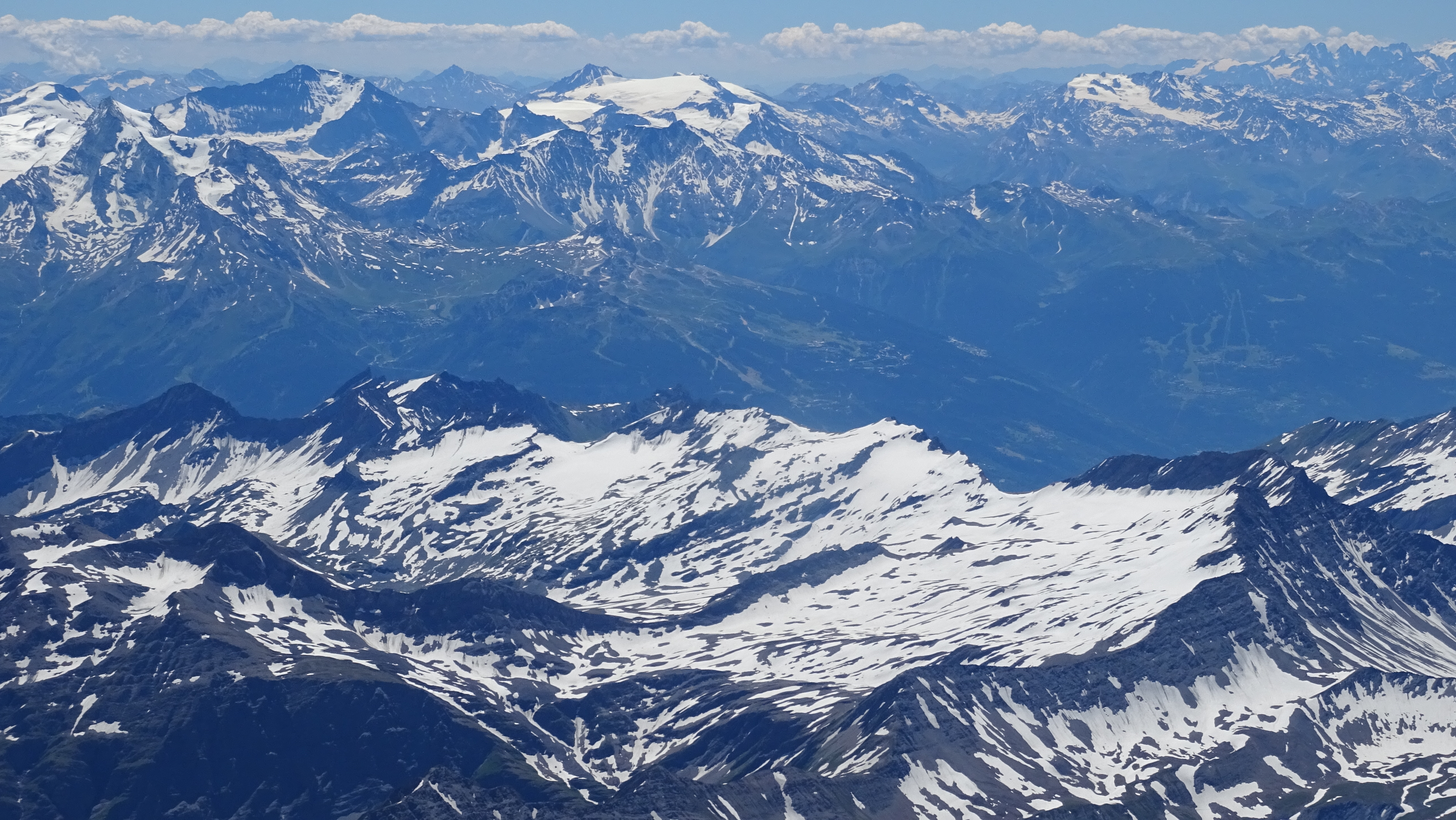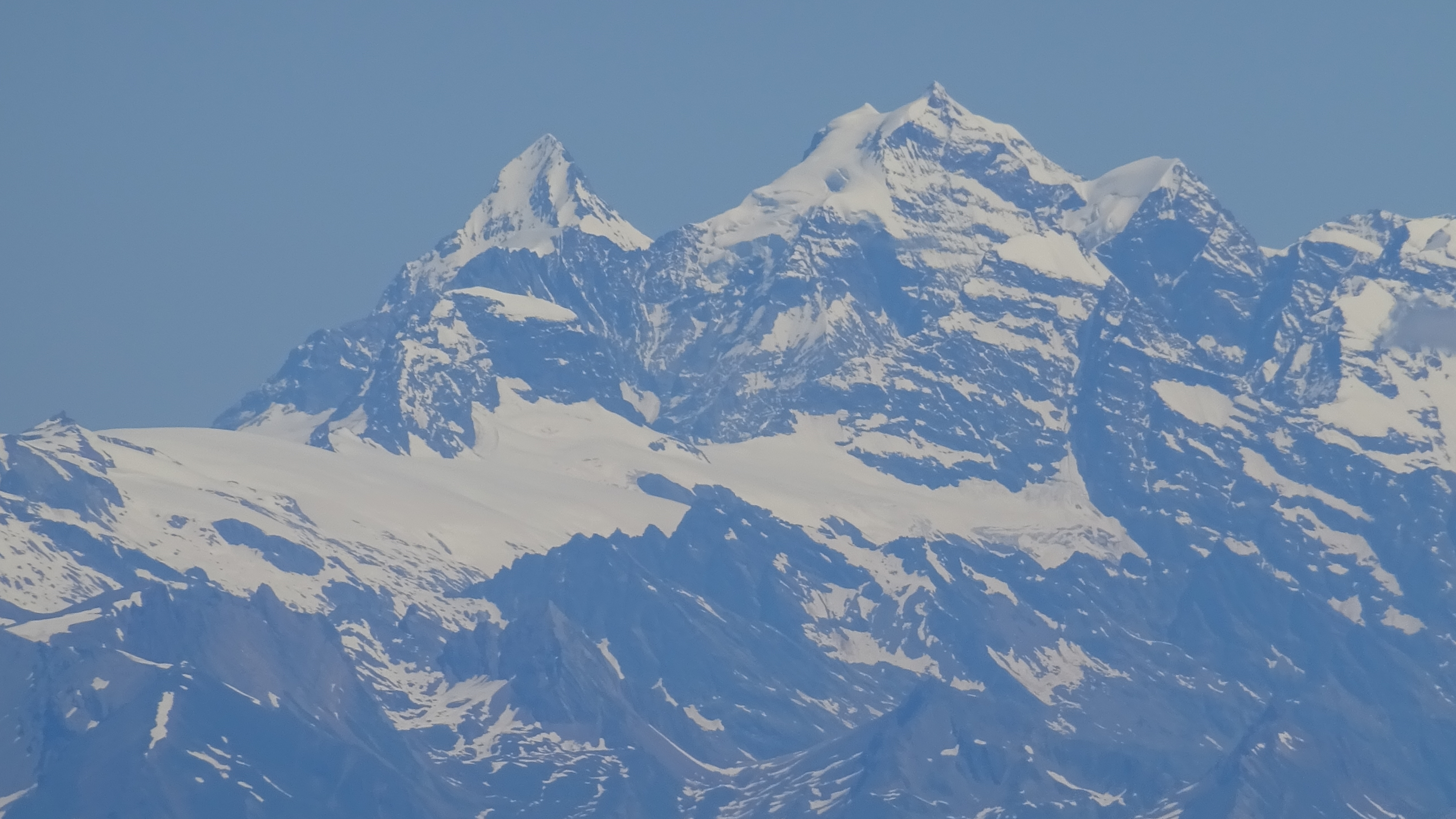 Cred că de aici ai cea mai completă imagine asupra Alpilor. În fond e și normal, doar e cel mai înalt vîrf din întregul lanț alpin. Franța, Italia și Elveția erau toate la discreția ochilor noștri! Am încercat să-mi întipăresc în minte cît mai multe detalii din ampla panoramă care mi se deschidea în fața ochilor. Imposibil cu asemenea puzderie de vîrfuri și creste! Noroc de aparatul foto! Cîteva dintre acestea: