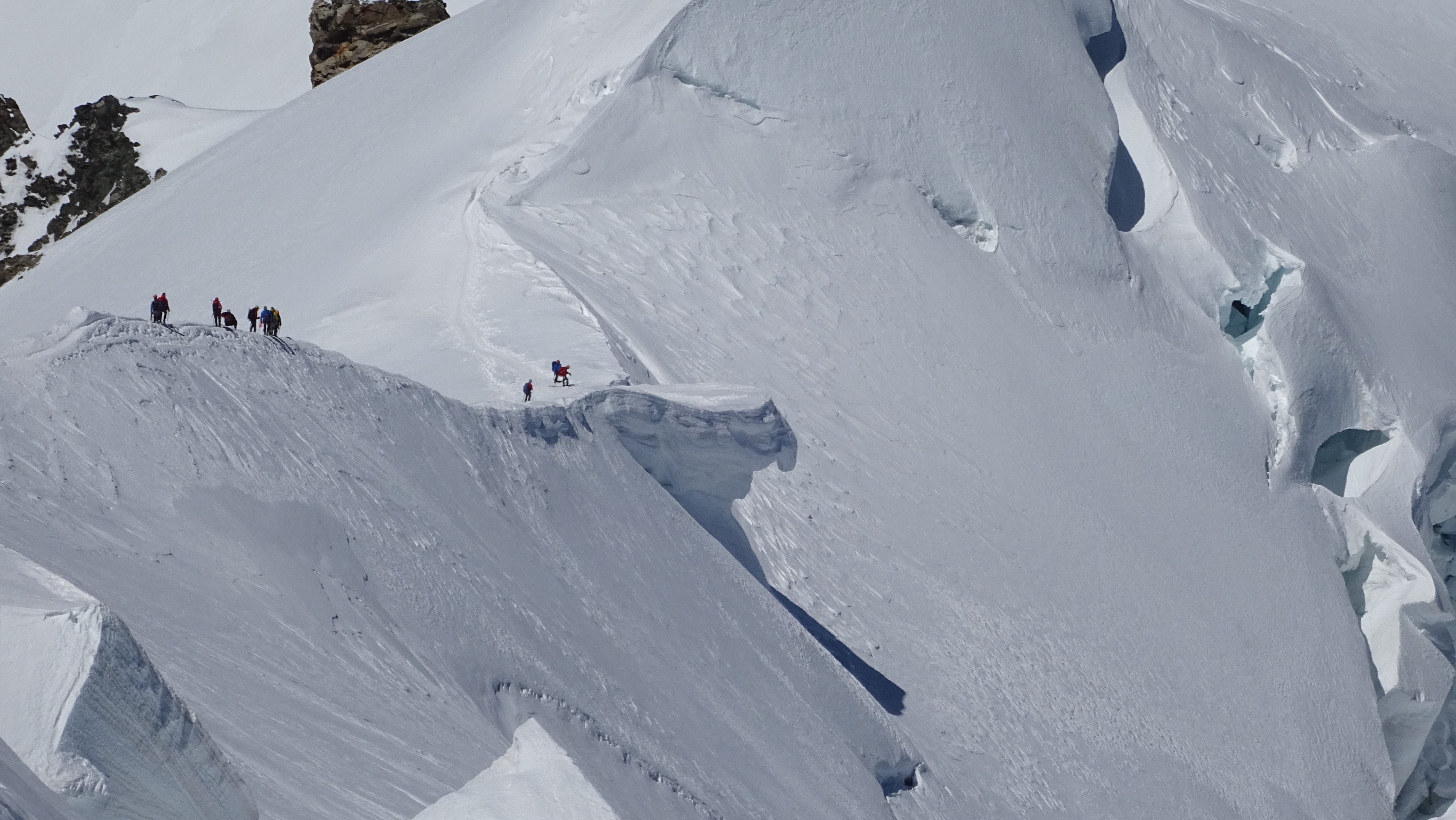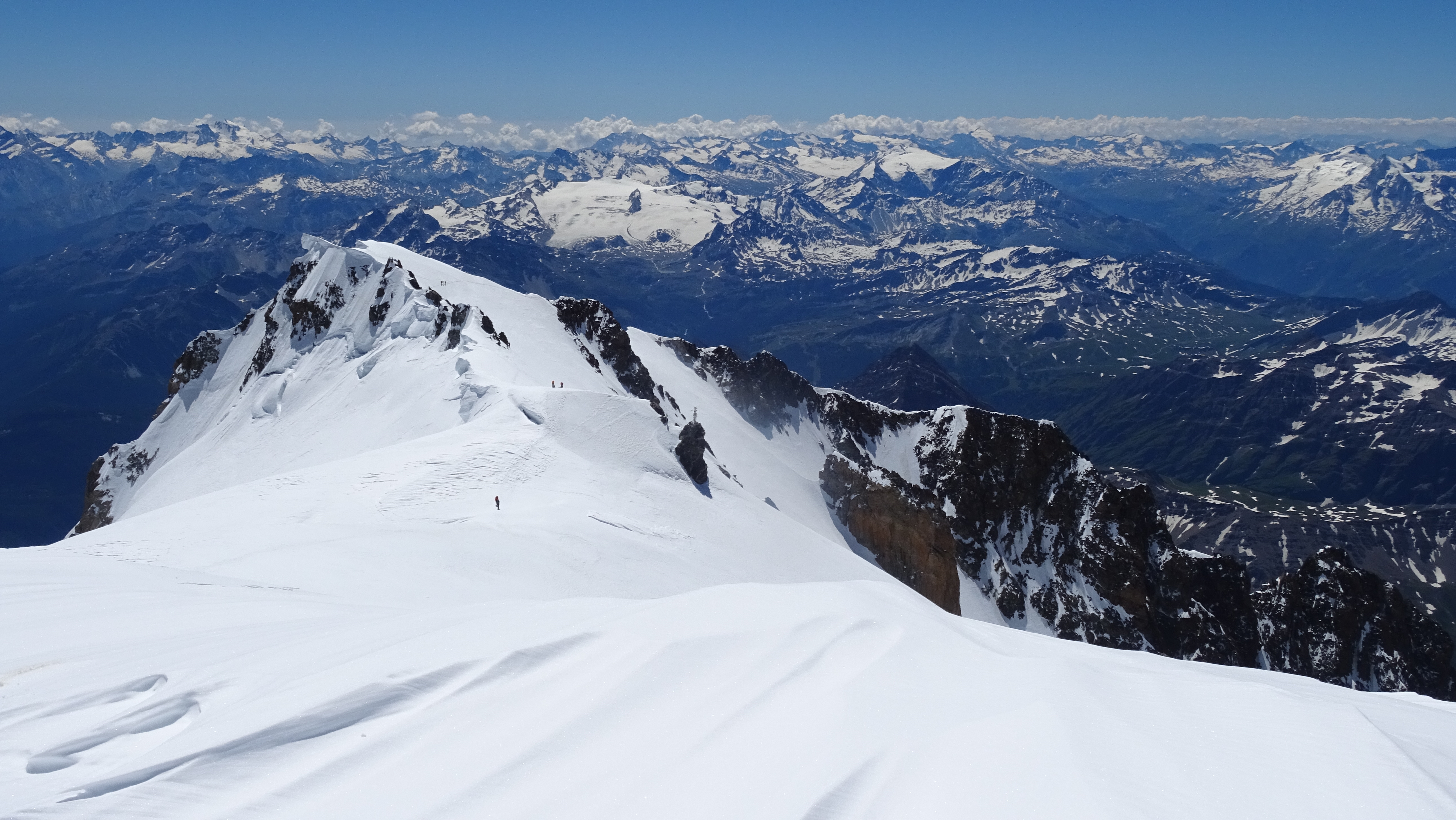 O oră și douăzeci de minute am stat pe vîrf. Vîntul adia slab, nori erau foarte puțini și doar în depărtare. Acesta a fost momentul de apogeu al explorărilor noastre alpine, începute în urmă cu 8 ani. Îi tot dădusem tîrcoale cu ochiul în cîteva rînduri, ba din Monte Rosa, ba din Gran Paradiso, i-am cunoscut și simțit sălbăticia de pe fața sa italiană, fără să ne lase totuși să ajungem atunci pînă pe creștetul lui. Uite ca acum ne-a permis și ne-a primit cu brațele deschise, ca să zic așa.