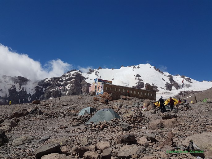 Ne-am pus așadar în pielea inginerilor constructori și am refăcut zidul de pietre pentru a ne feri cortul de vînt, am instalat cortul, lăsînd în el echipamentul tehnic și alimente pentru ascensiunea noastră din noaptea următoare.