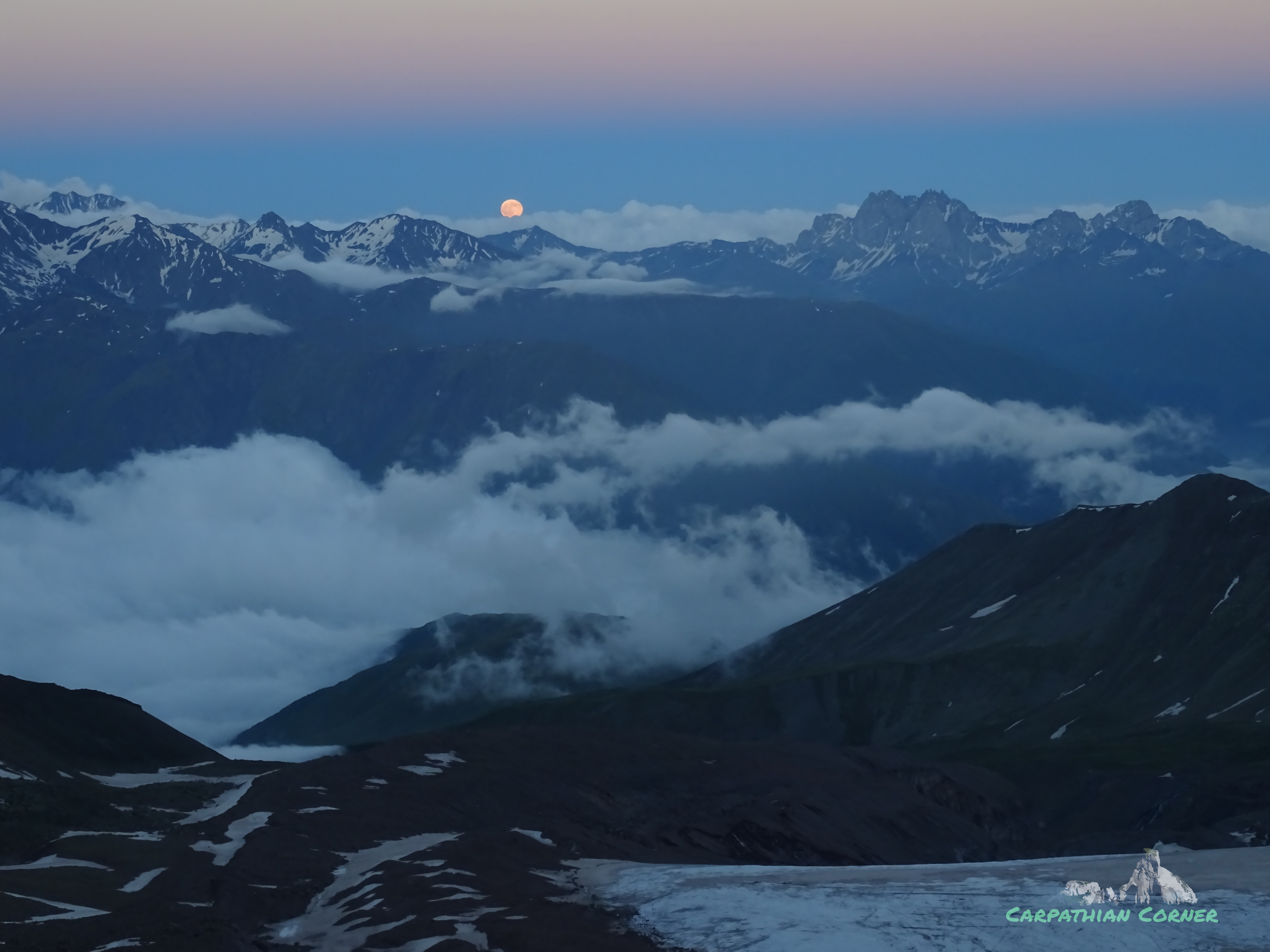 Drumul de întoarcere spre refugiul Bethlemi l-am parcurs într-o atmosferă de poveste. Vîntul nu bătea aproape deloc. Cețuri fine albăstrui albicioase învăluiau agale pantele sudice ale Kazbekului.