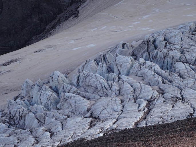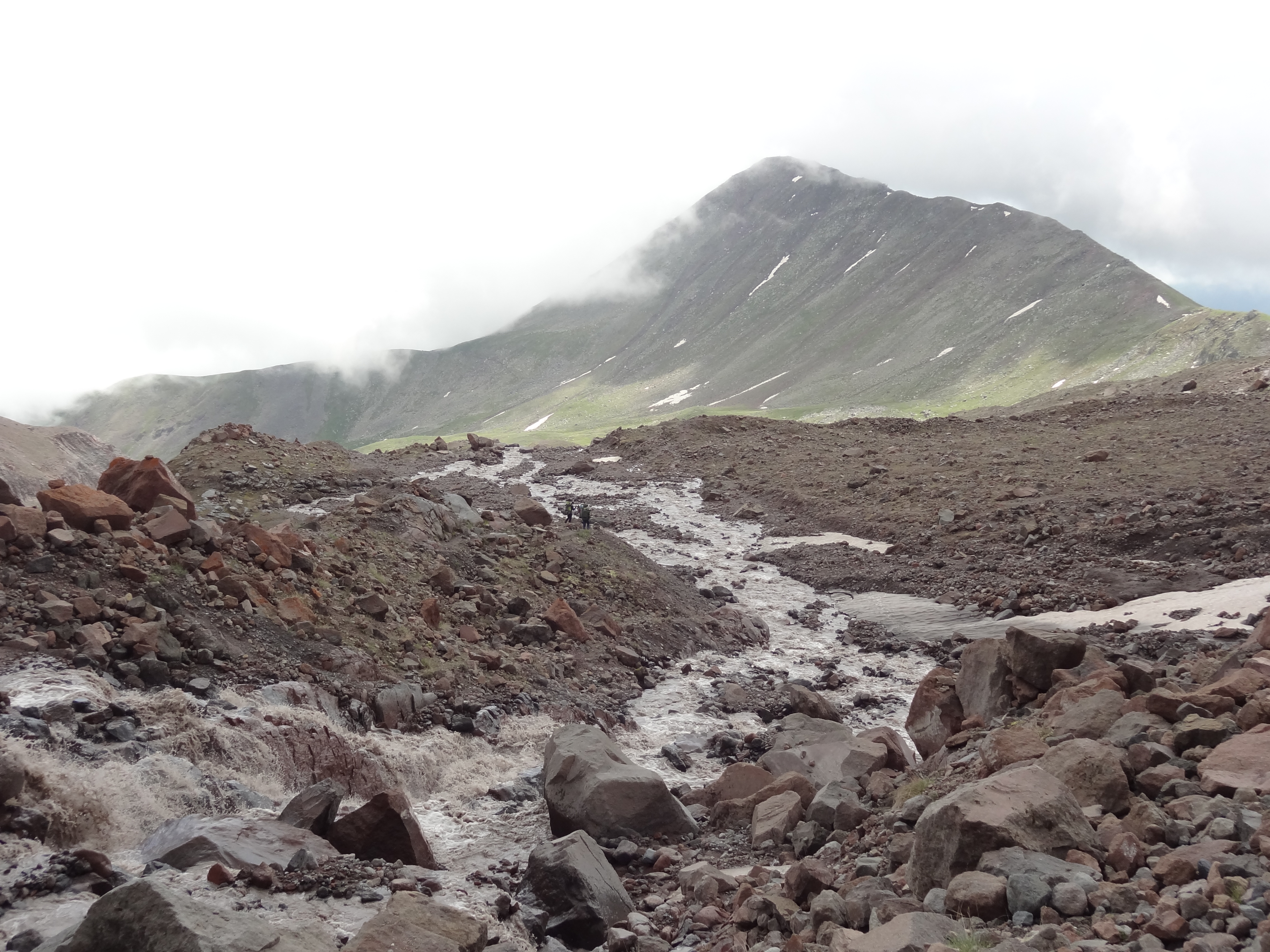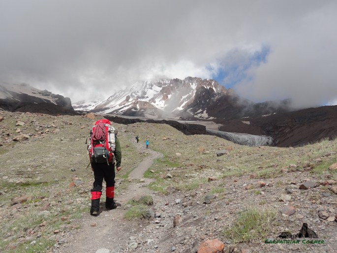 Azi ne luăm rucsacii grei în spate și pornim încet spre Bethlemi. Înainte de a ajunge la ghețar, trebuie să traversăm un torent glaciar vijelios, care ne creează ceva probleme. Ar fi trebuit să mergem pe partea lui stîngă, însă nu am reușit să găsim un vad bun de trecere, așa că am continuat să urcăm pe dreapta sa, ajungînd pînă la jumătatea pragului glaciar de pe care venea apa. Reușim pînă la urmă să găsim un punct de trecere.