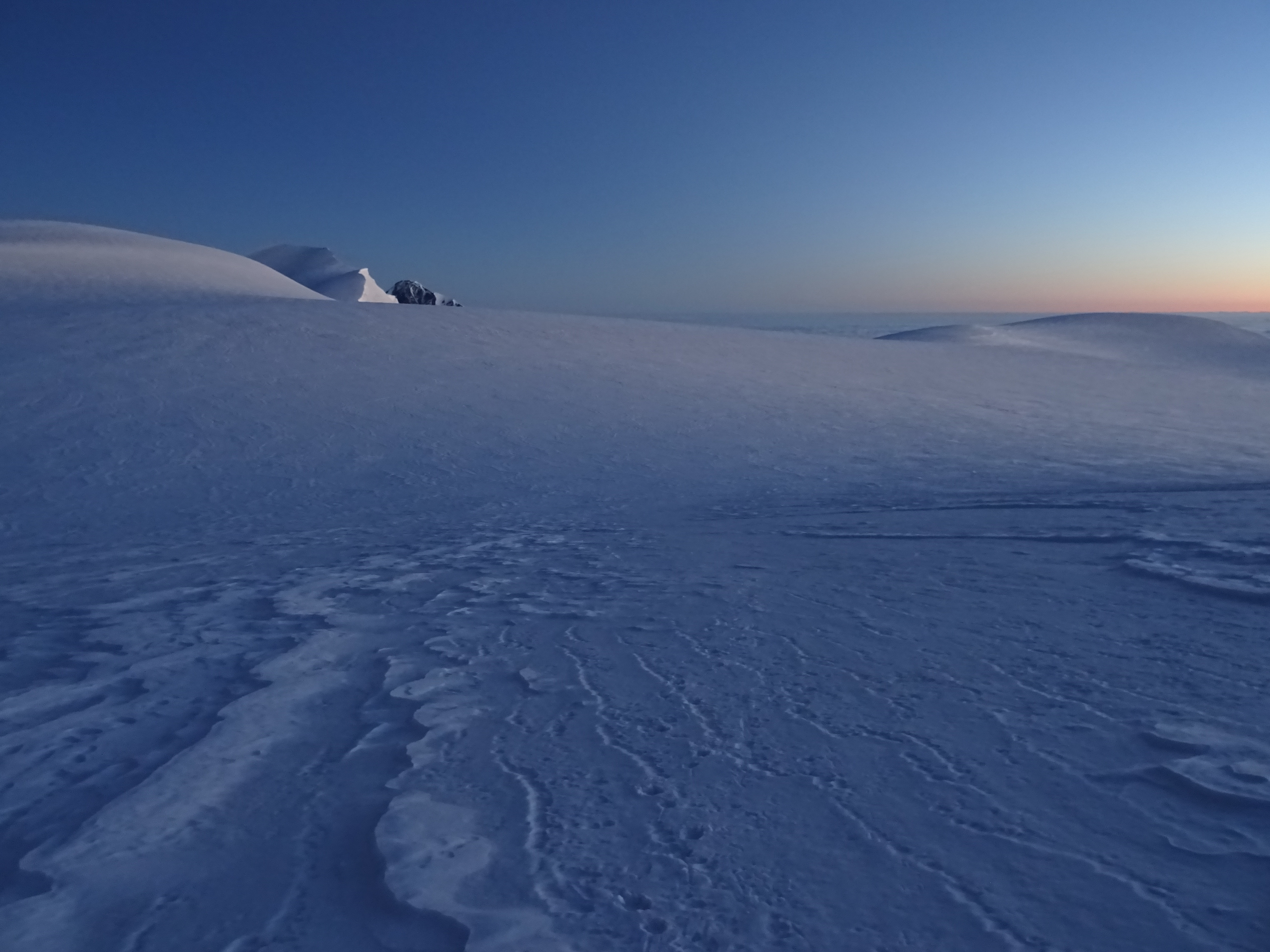Zăpada trosnește sub bocancii noștri în timp ce străbatem întinderile platoului Maili, în lumina obscură a dimineții. O imensă mare de nori scaldă întreaga cîmpie rusă. Practic, tot ce pot cuprinde cu privirea de aici către nord, este acoperit de un plafon compact de nori, care pare că este în prelungirea acestui platou. În lumina aceea difuză, cu tonuri alb-albastre-cenușii, am senzația că mă aflu undeva în Antarctica sau Arctica, chiar dacă nu am fost niciodată pe acolo. Ne îndreptăm pașii încet dar sigur către Rusia, pe al cărei teritoriu vom pătrunde ilegal atunci cînd vom apuca poteca într-o ușoară spirală pe conul Kazbekului.