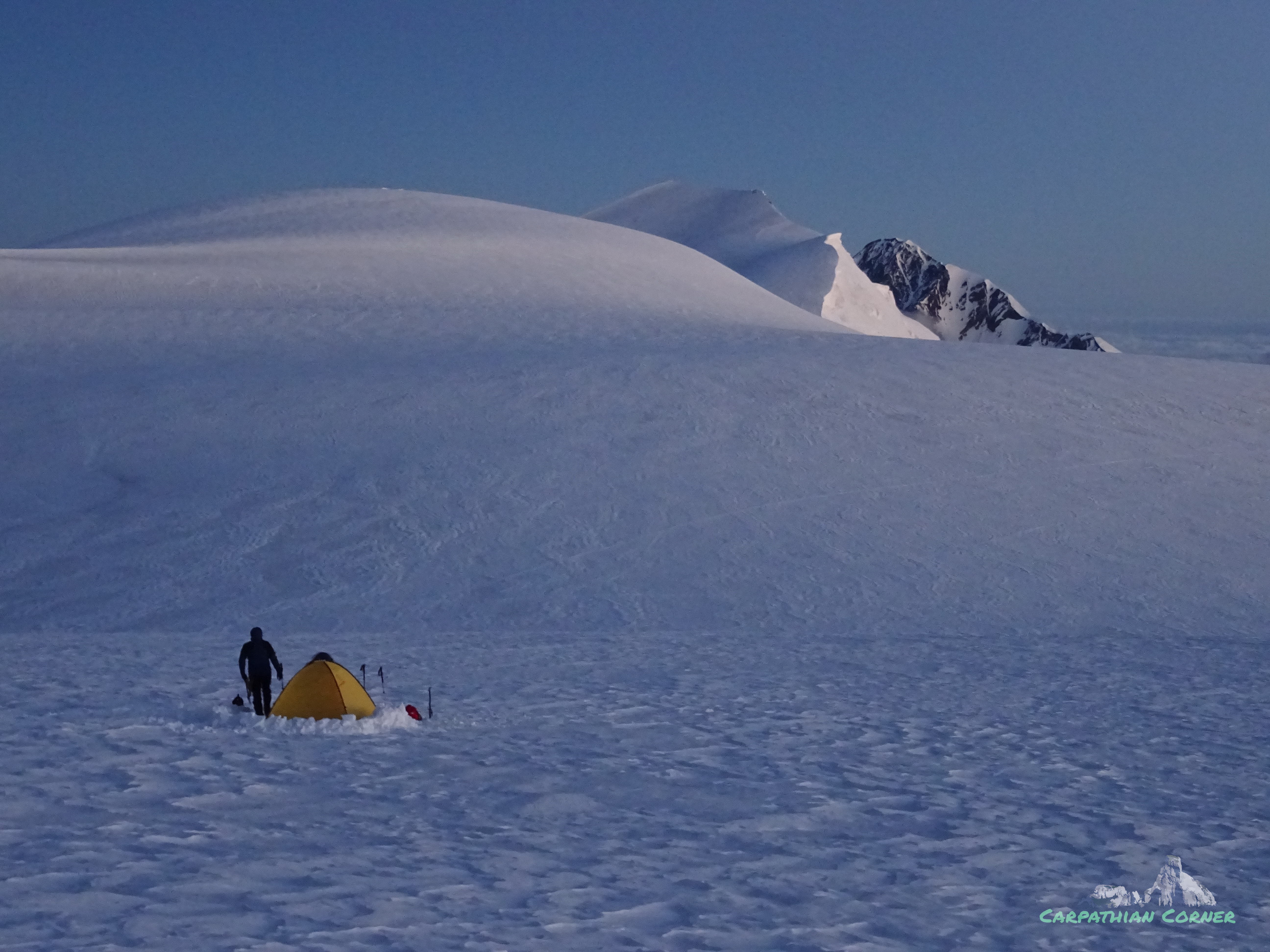 Pe la 8 seara, ne băgăm în sacii de dormit. Avem cam 5 ore de odihnă înainte. Mă gîndeam că voi putea dormi măcar puțin, avînd în vedere deficitul de somn din noaptea precedentă. Din păcate, n-am reușit să pun geană pe geană absolut deloc, chit că am numărat sute de oi în gînd, am aplicat tehnici de relaxare și am ascultat tot felul de muzici. Nimic nu a dat roade. Rămîn măcar cu niște audiții făcute în creierii munților. Nu mi se întîmplă prea des să ascult Diana Krall , Anathema sau Pink Floyd la 4000 m altitudine, într-un cort, la tîmpla Kazbekului.