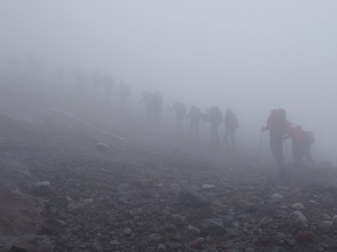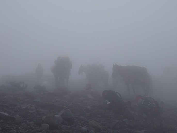 Pornim la 2 noaptea. Mergem într-o liniște mormîntală, învăluiți cînd și cînd de pînze subțiri de ceață, pe măsură ce ne apropiem de platoul Maili, ce se desfășoară între 4200 și 4500 m altitudine.
