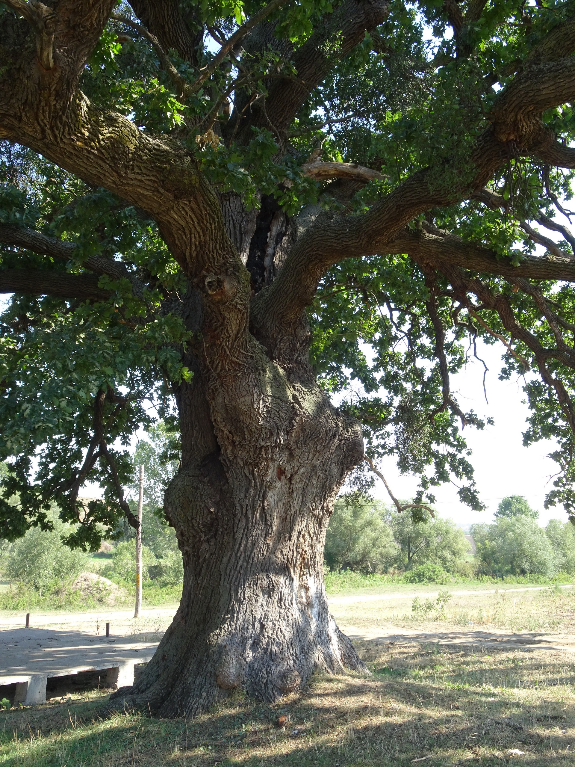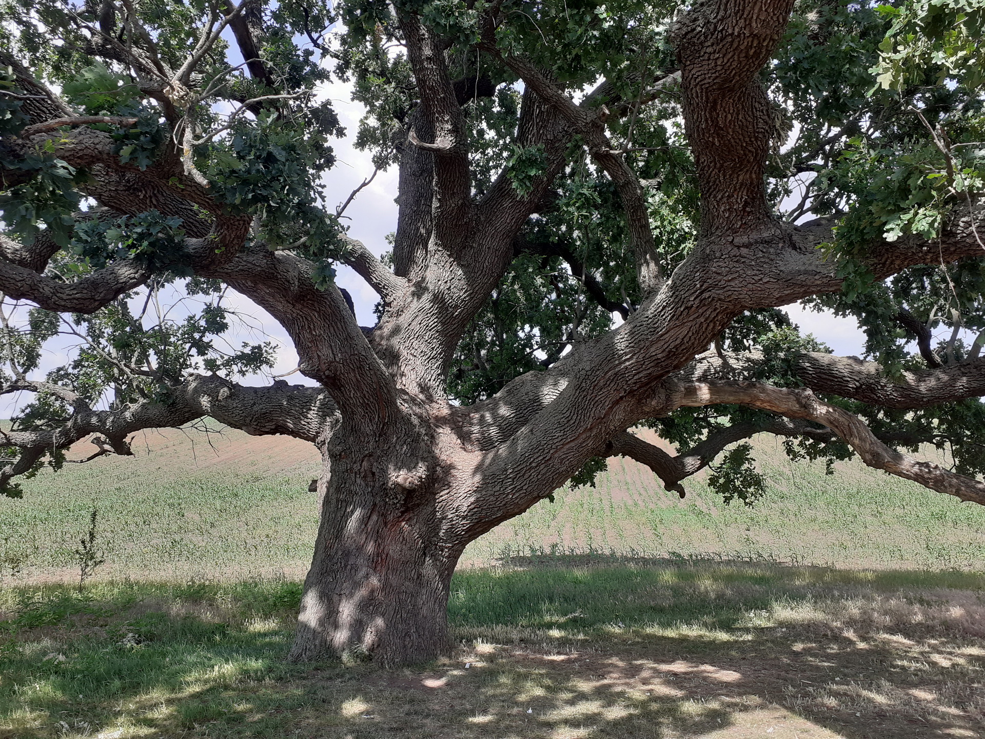 L-am găsit într-o după-amiază toridă, bătut de soare, îndurînd cu stoicism căldura înăbuşitoare, singur printre ogoare. Oamenii locului îi spun Stejarul arcaşilor. Bineînțeles, nu poate fi vorba decît despre arcaşii lui Stefan cel Mare. Fără să aibă vreo legătură cu Marin Preda, eu i-aş zice Marele singuratic. Este un stejar fabulos, ajuns la vîrsta de 500 ani şi care plesneşte de sănătate. Fiind potopit de atîta lumină, s-a ramificat aşa de vîrtos încît acum, după 5 secole de cînd s-a ițit din pămînt, la doar 1 metru înălțime de la sol țîşnesc din trunchiul său gros (peste 5 metri circumferință) adevărați arbori maturi, nu ramuri oarecare. Un adevărat spectacol mut, o colosală statuie vie pe întinderile nude ale podişului Covurlui.