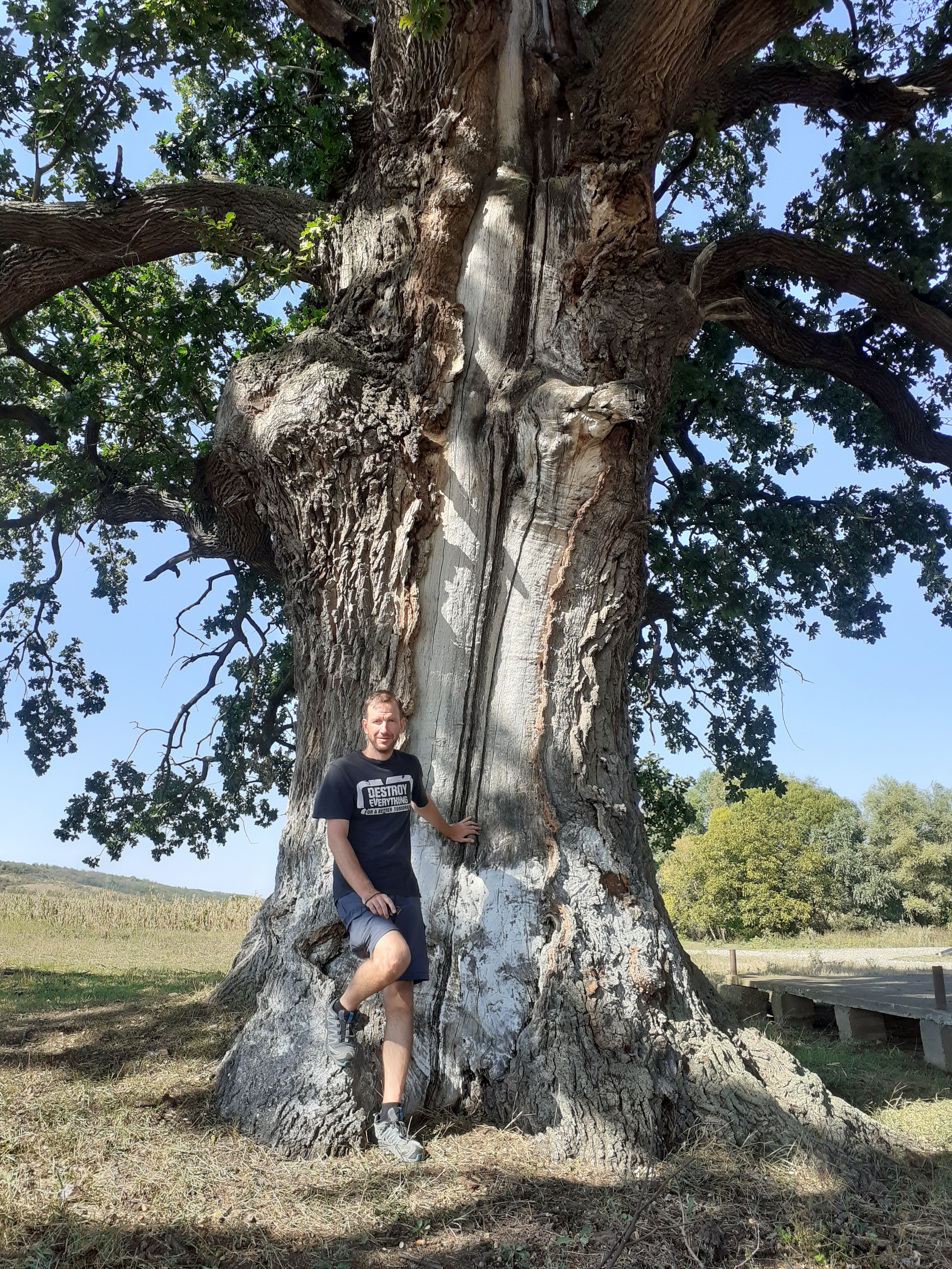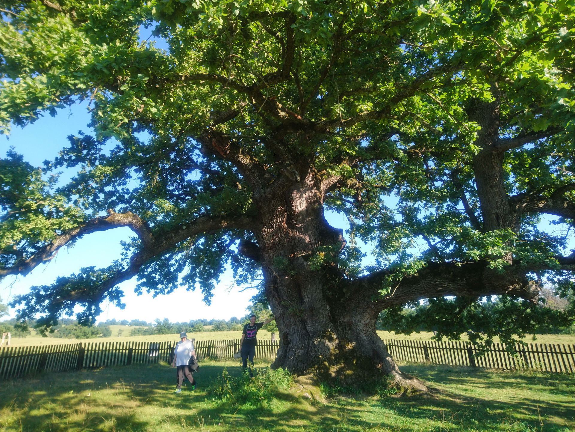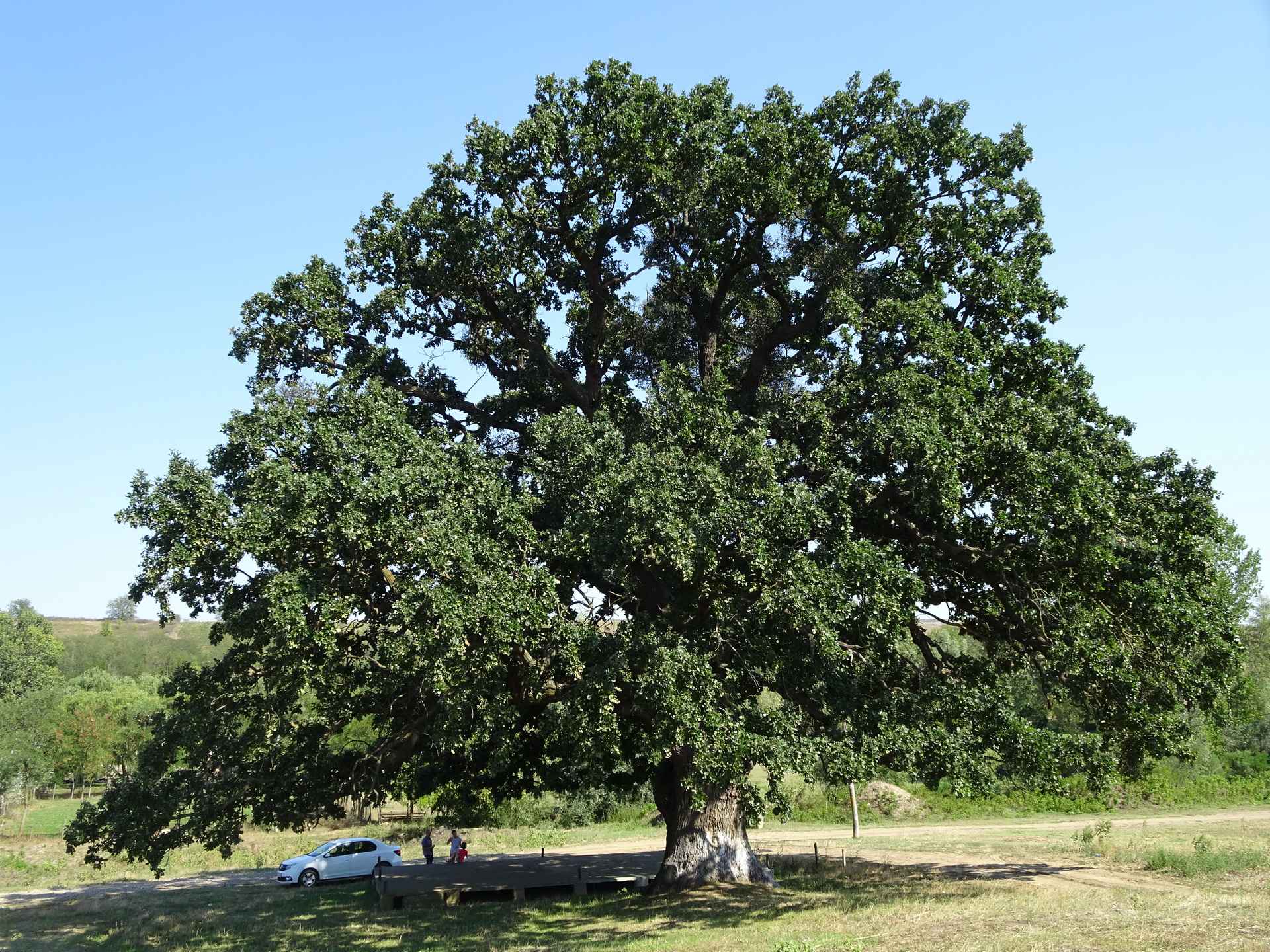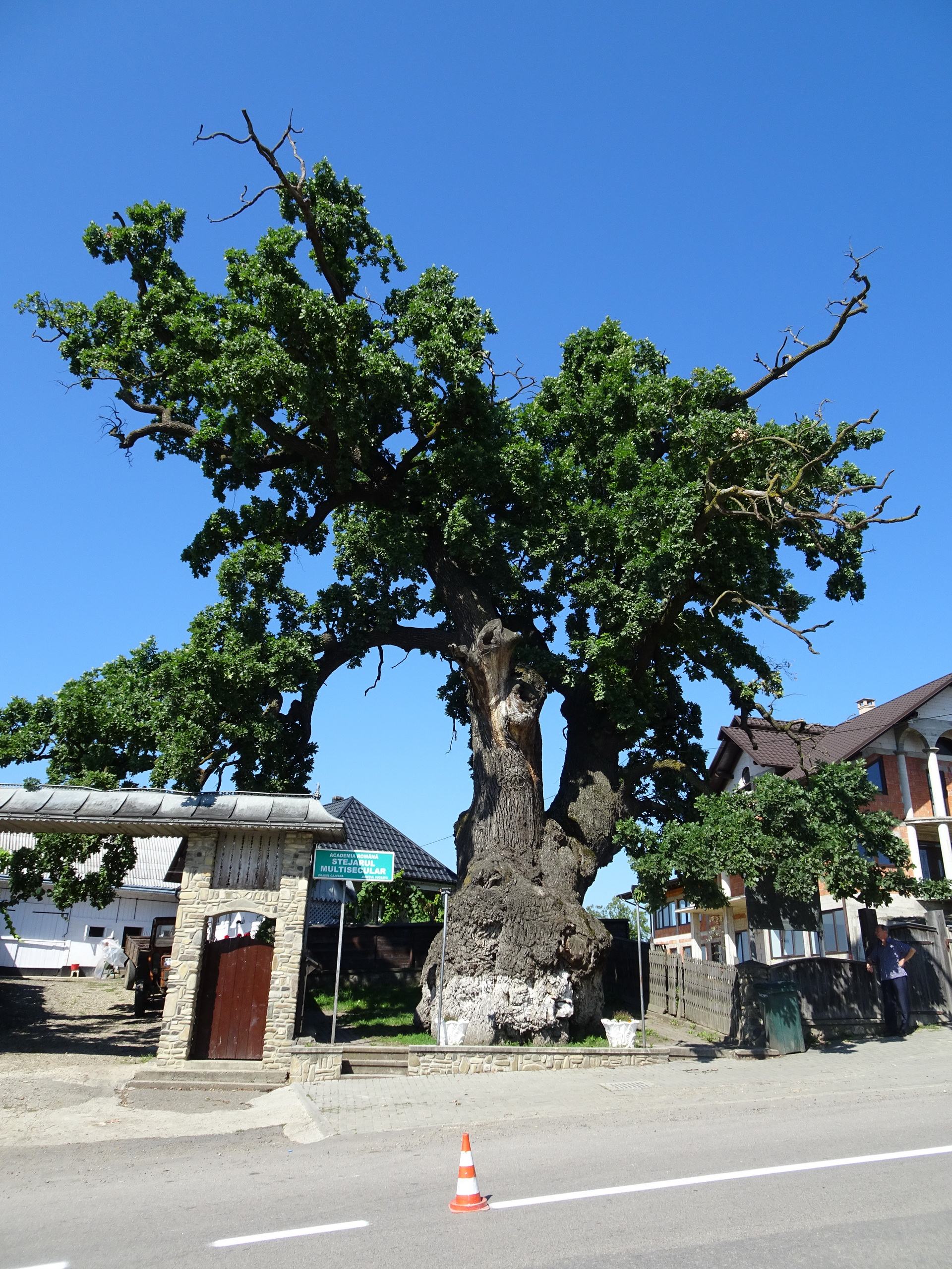 Demult tare, pe cînd pămîntul Asiei vibra de tropotul cailor în cavalcada cărora mongolii îşi construiau imperiul efemer, pe teritoriul actual al țarii noastre, cumanii trăiau bine mersi laolaltă cu populația locală pe care o cam încălecaseră, ce-i drept, nebănuind urgia cumplită care urma să se abată peste ei în scurt timp. Mă refer la marea invazie mongolă din 1241. Ei, tocmai din acele vremuri tulburi, ceva viu a ajuns, în mod uimitor pînă la noi. Doi stejari magnifici s-au încăpățînat să înfrunte veacuri la rînd, pline de hazarduri şi vicisitudini. Aş zice că-i imposibil să nu te ducă gîndul la enții din ,,Stăpînul inelelor”, atunci cînd stai în preajma lor! Sînt cei mai bătrîni stejari din România, ba chiar şi din sud-estul Europei. Unu-i moldovean, Quercus robur get-beget, adică stejar pedunculat, localizat în județul Suceava, la Cajvana, iar altu-i ardelean, gorun de la Mercheaşa, în județul Braşov sau Quercus Petrea, cum îi zice pe limba moartă a romanilor. Sigur a fost şi unul muntean, dar ăsta s-a pierdut pe drum, mistuit cine ştie în ce împrejurări.